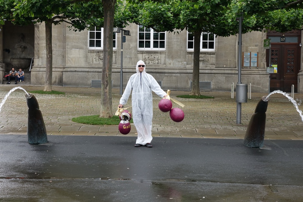 war teil 1 geprägt von homogen wirkenden roten ballons, so ist teil 2 ein reigen symbolhaft gestalteter gehäuse (hoden für die wasserspeier), die von den gegensätzen kapital und konsum, reich und arm, gewinnen und verlieren erzählen.