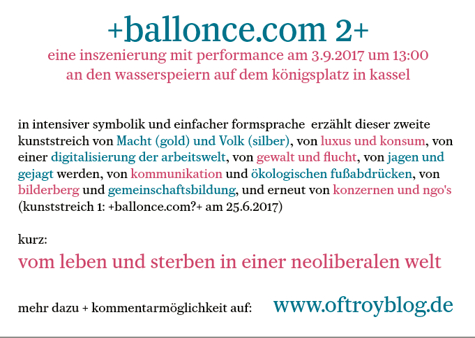 am 25.6.2017 um 13:00,- an den wasserspeiern auf dem königsplatz kassel - startet der kunststreich +ballonce.com?+