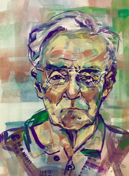 konny, vierundachtzig jahre altliveporträt 90 minuten, gouache,40x30cm, 2019